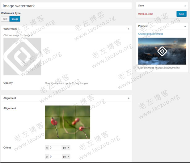 对于教程类的文章还算是好办的,我们可以在插图中添加水印,这样即便是要转载不留有出处,这样在要完整的展示教程文章的时候必须要引用图片,否则转载过去的效果体验效果一般,图片上的水印也可以证明我们的出处。在这篇文章中,老左介绍几款常用的WordPress水印插件。