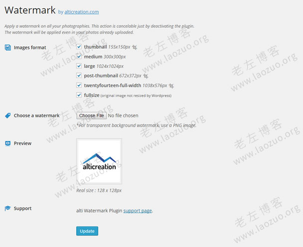 总结,以上是老左整理的目前可以使用的Wordpress图片水印功能,有些时候还是需要稍微加一些的。当然,对于复制转载的网友,最好还是保留出处,尊重每一个原创作者。