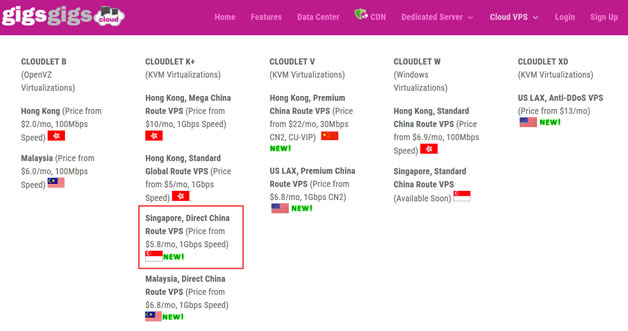 老左在之前的文章中也有”GigsGigsCloud香港VPS CLOUDLET K套餐PCCW线路评测体验“对于他们家香港机房的评测。同时我也有看到他们家也有提供新加坡机房,注意他的原因是起步价格比中国香港便宜,而且之前也没有测试过,就准备开通一台看看。