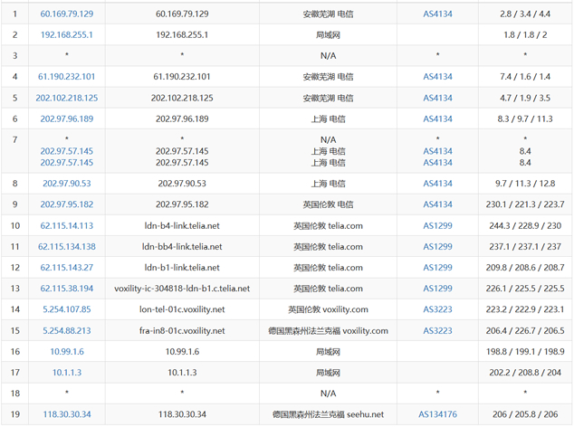 | 移动 | 江苏镇江(移动) 231.3ms/福建泉州(移动) 301.2ms | 265.9ms |