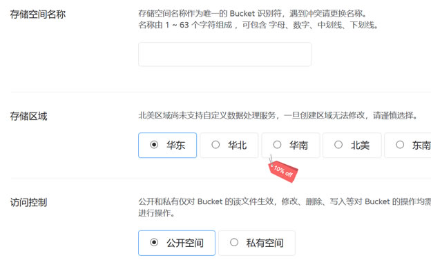 | 存储空间(华东) | 第 0 GB 至 10 GB | 免费 | 0.06 元/GB/月 | |