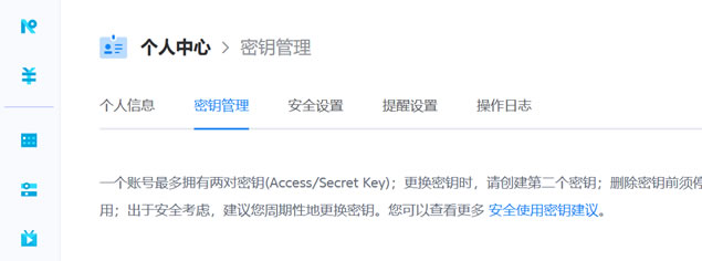 对于七牛的对象存储直接在后台创建。密钥在个人中心中可以看到。