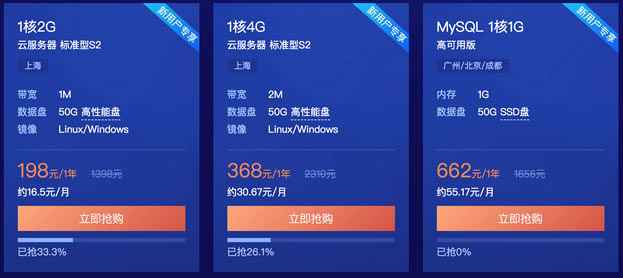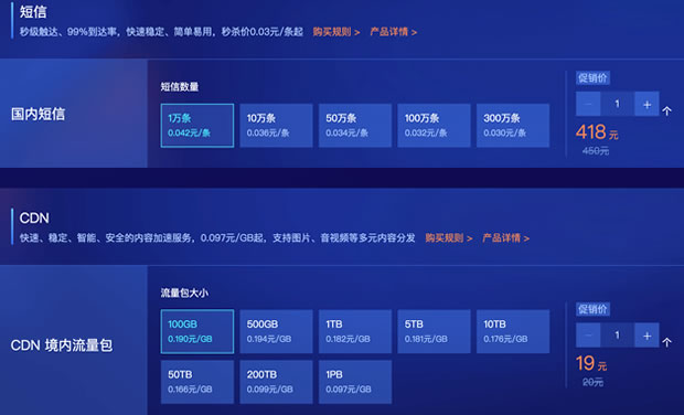 同时,还有云数据库、短信、CDN流量包等产品,如果有需要的朋友可以看看。