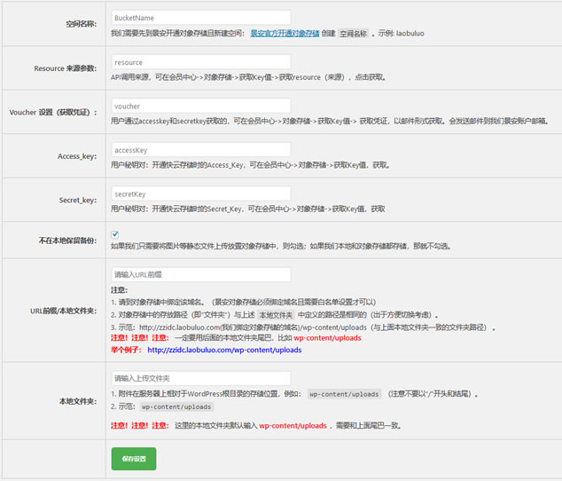 根据获取到的数据参数,以及填写到插件对应设置中即可配置完毕。建议勾选不在本地备份,这样可以缓解我们本地服务器的存储,这样搬家网站迁移也方便一些。如果我们有可能配置云数据库,这样本地服务器基本上没有多少需要存储的内容,迁移网站方便。