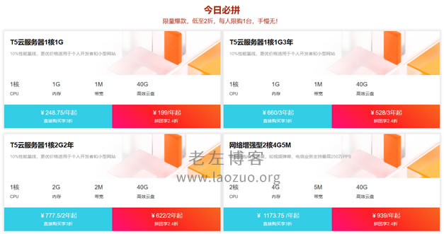 一晃2019年即将过半,在上半年我们看到大商家的促销活动并不是特别的多,大家都在酝酿下半年的促销活动。昨天老左有看到阿里云新推出的Hi拼购活动,这个活动有类似之前的活动,但是对于老用户还是有点用的,以前我们看到的促销活动仅限新用户参加,老用户只能感慨。这次活动虽然对于新用户价格更低一些,但是老用户还是可以享受低至三折的云服务器促销的。