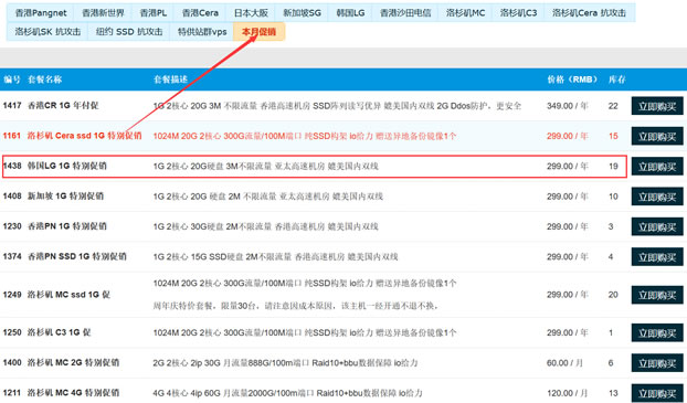 这里看到有香港、新加坡、洛杉矶等年付活动产品。一般建站还是可以使用的。