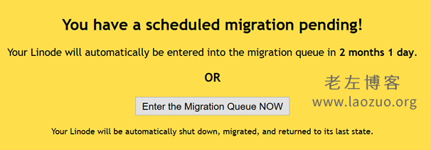 昨天我们有看到如果有Linode JP1机器的朋友应该是会收到一封邮件,告知将于六月八日迁移JP1至JP2,这次不会像之前几次随意的说说,而是真的要迁移。如果你不信的话登录已有JP1的机器后台看到是有迁移倒计时的,我们可以选择到时的时候官方自动帮助我们迁移,我们也可以自己手动提前迁移。