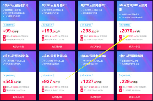 2、如果我们可能需要正式做网站,且未来三年就准备一直使用,其实三年付款方案的2070配置”5M带宽2核8G云服务器“才是比较有性价比的。