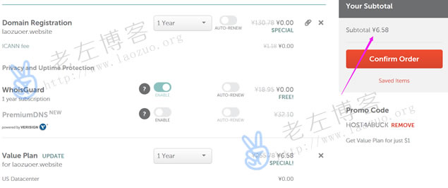 新注册域名赠送1年隐私保护,仅需要8.8美元,活动也是限时的。如果我们看到价格不对就不要注册了。