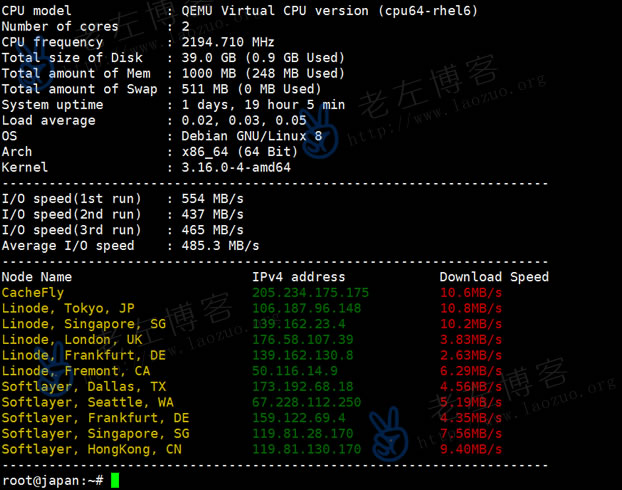前几天有看到部分博客中有介绍到KVMLA新增的日本机房VPS主机,采用KVM架构,带宽50Mbps,在这篇文章中老左也将体验下这款新的机器。