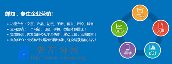 蝉知,这个名字有点意思,这款PHP CMS程序主要针对企业营销整合的,包括产品、文章、论坛、评论、博客,以及还内置微信公众平台,支持电脑、手机、微信全网功能。