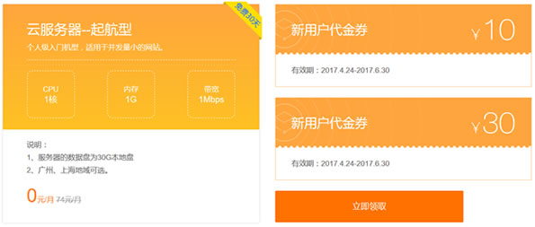 A – 新用户免费云服务器30天和代金券