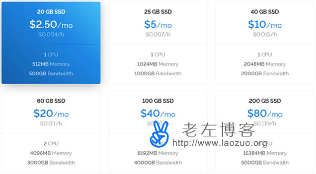从配置上看流量从500GB起步、硬盘最低配置比以前也增加20GB,从这个结构看,应该也是有意识的应付Linode商家调整的,不过目前每个账户只能开2台2.5美元方案。