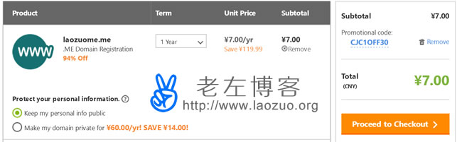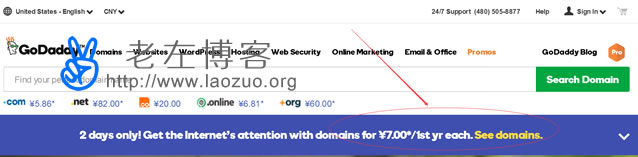 这里老左知道一个小技巧,包括之前有分享过55元注册.COM域名一样(教程方法),虽然目前Godaddy支持简体中文,但是我们在购买域名、主机的时候还是要将语种设置成US英文,因为这样价格才便宜,如果是设置简体中文,很多便宜价格是不会展现的。(币种可以是CNY)