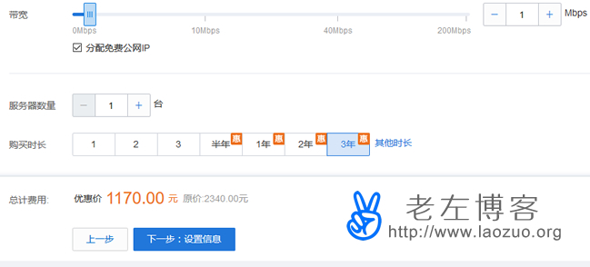 2、毕竟带宽是有限的,默认1Mbps带宽如果是用来搭建网站还是没有多大问题的,如果是大流量且大型站点,则带宽需要升级。