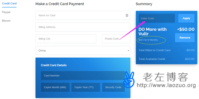 我们之前新注册Vultr账户获得最高的是50美金账户余额,但是有效期是60天,这里要分享的应该不算是新闻,在上周的时候已经看到有很多人发布且使用。本来的优势是可以PAYPAL和信用卡同时使用,且有效期6个月的50美金余额,今天看到有网友提到已经取消支持PAYPAL,也只能用信用卡。