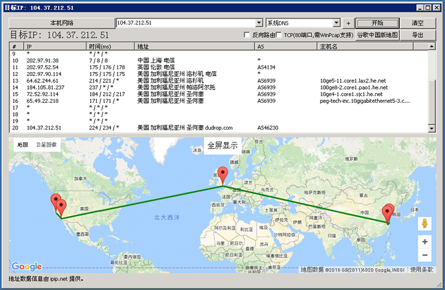 从这个MTR软件看到是走伦敦的,应该是这个软件的问题。伦敦节点的IP地址实际是中国电信出口IP地址。