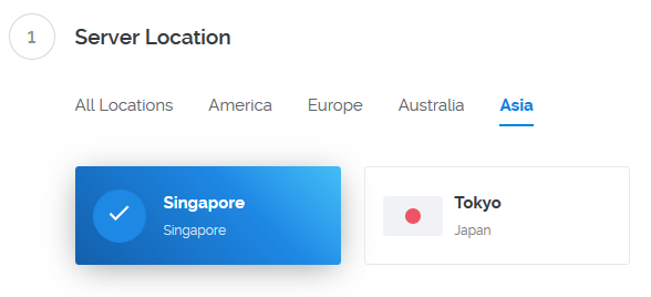 如果有账户之后,可以看到在地区选项中可以看到有新加坡机房可选。