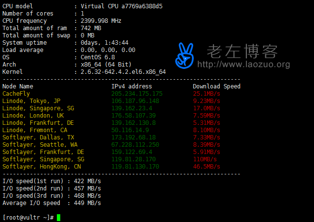 3、如果仅仅是选择一款性价比还可以的VPS建站,对于速度要求不是太高且稳定的服务商,Vultr还算可以接受,速度上肯定不如国内或者直连亚洲其他机房好。
