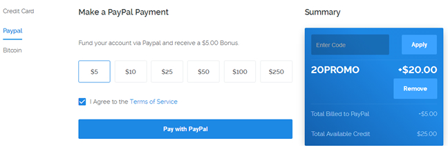 可以检测到目前活动还是有效的。正如我们熟悉的一样,如果绑定信用卡或者PAYPAL需要最低充值5美金才可以激活账户。(这里看不到赠送20美金是有有效期的)