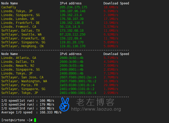 总结,Virtono商家老左也是第一次接触到,以上是简单的购买了一台伦敦机房机器测试。从PING速度看,明显可以看到肯定不如美国或者亚洲节点的,所以如果是用来建中文站点可能还是不太适合。因为有几个欧洲机房节点,而且价格不是很贵,对于有需要这些节点项目需要的,还是可以使用的。
