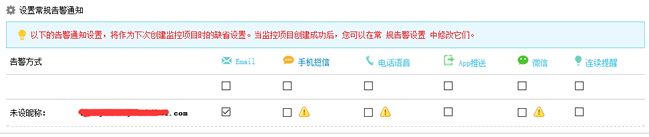 监控宝告警支持多种主流通讯工具,包括电子邮件、短信、电话语音、APP推送、微信等,用户在创建监控项目的时候可以直接选择和设置。