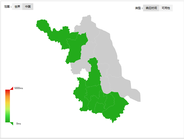 之后,就可以在监控宝中看到针对江苏地区监控点的用户响应统计。