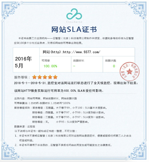 如果需要,监控宝还可以颁发SLA服务等级证书。老左就曾见过有个人站长和博主,把监控宝SLA证书挂在自己的网站上,不知道是不是显得网站的服务等级比较高。