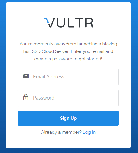 这里依旧是输入新注册VULTR账户邮箱和密码,后注册账户。