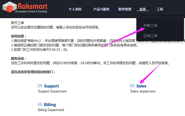 截图保存之后,我们需要到后台,在 支持-开心工单-选择SALES部门。