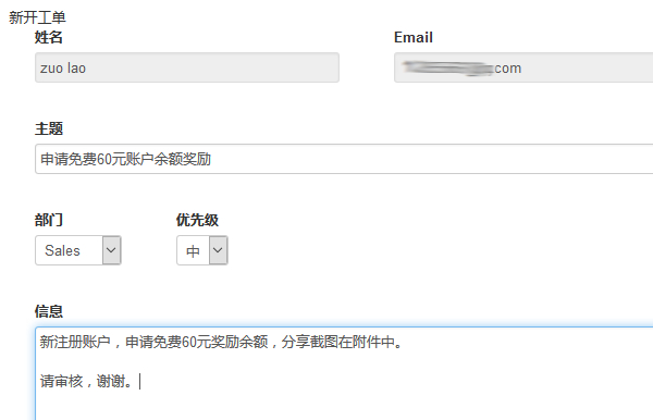 第四、发工单申请60元余额奖励