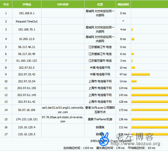 从PING速度看,与香港机房速度差不多,部分电信线路丢包还是有的,移动、联通的速度不是很理想,电信用户还是比较快的。