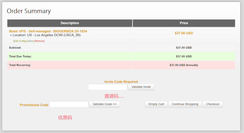 | BIGGERBOX | 1核 | 1GB | 20GB | 1TB | 1G | 1 | $37/年 | 购买 |