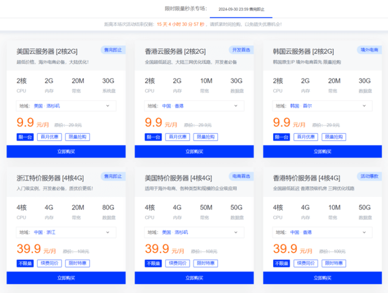| 浙江服务器 | 4核 | 4G | 80G | 20M | 39.9元/月 | 链接 |