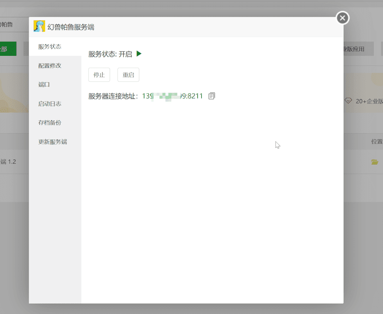安装完毕之后,我们可以配置基本的游戏服务器信息,以及我们还可以找到当前服务器的连接地址。
