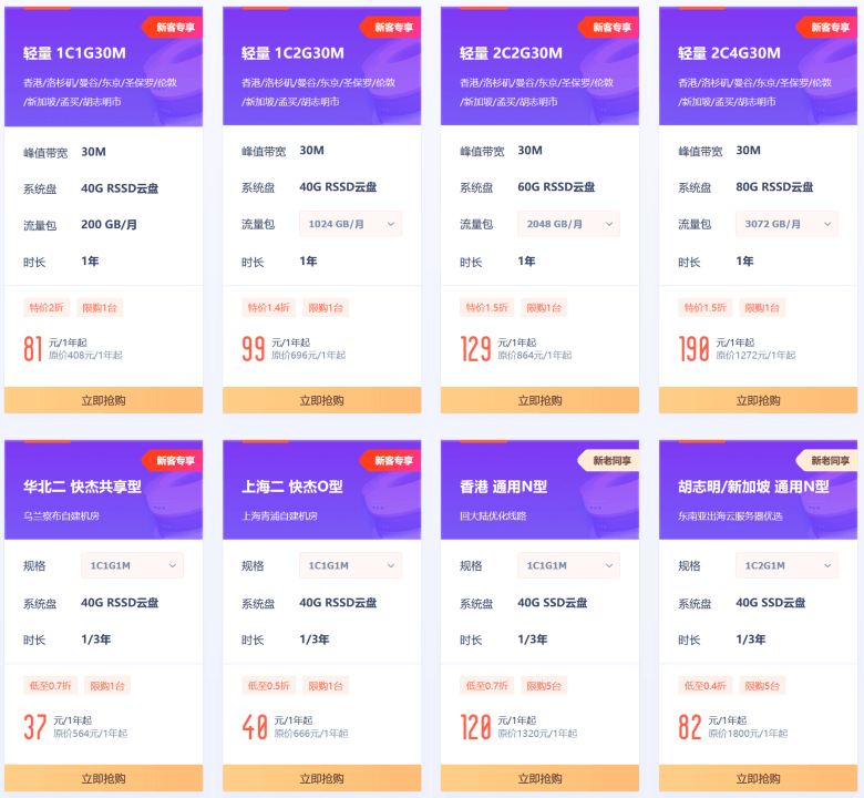 我们有看到适合新客的云服务器有最低年付37元,而且还有轻量服务器大带宽固定流量的。