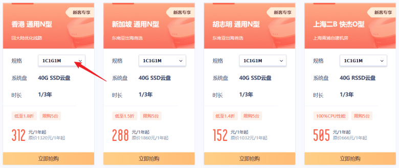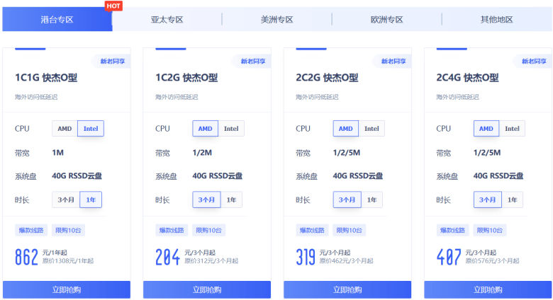 可选香港/新加坡/胡志明等多个机房,特价云服务器,最高可选三年。