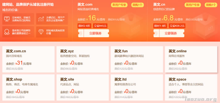 老左有在六月份的时候也有分享过新网域名注册商发布的域名促销活动(这里)。这不在九月份发布秋季域名促销活动,有提供年付16元的.COM域名,同时还有5个+的特殊后缀的域名是免费的。对于新网服务商是曾经非常老牌的域名注册商,早年老左也是有在他们家注册域名的。