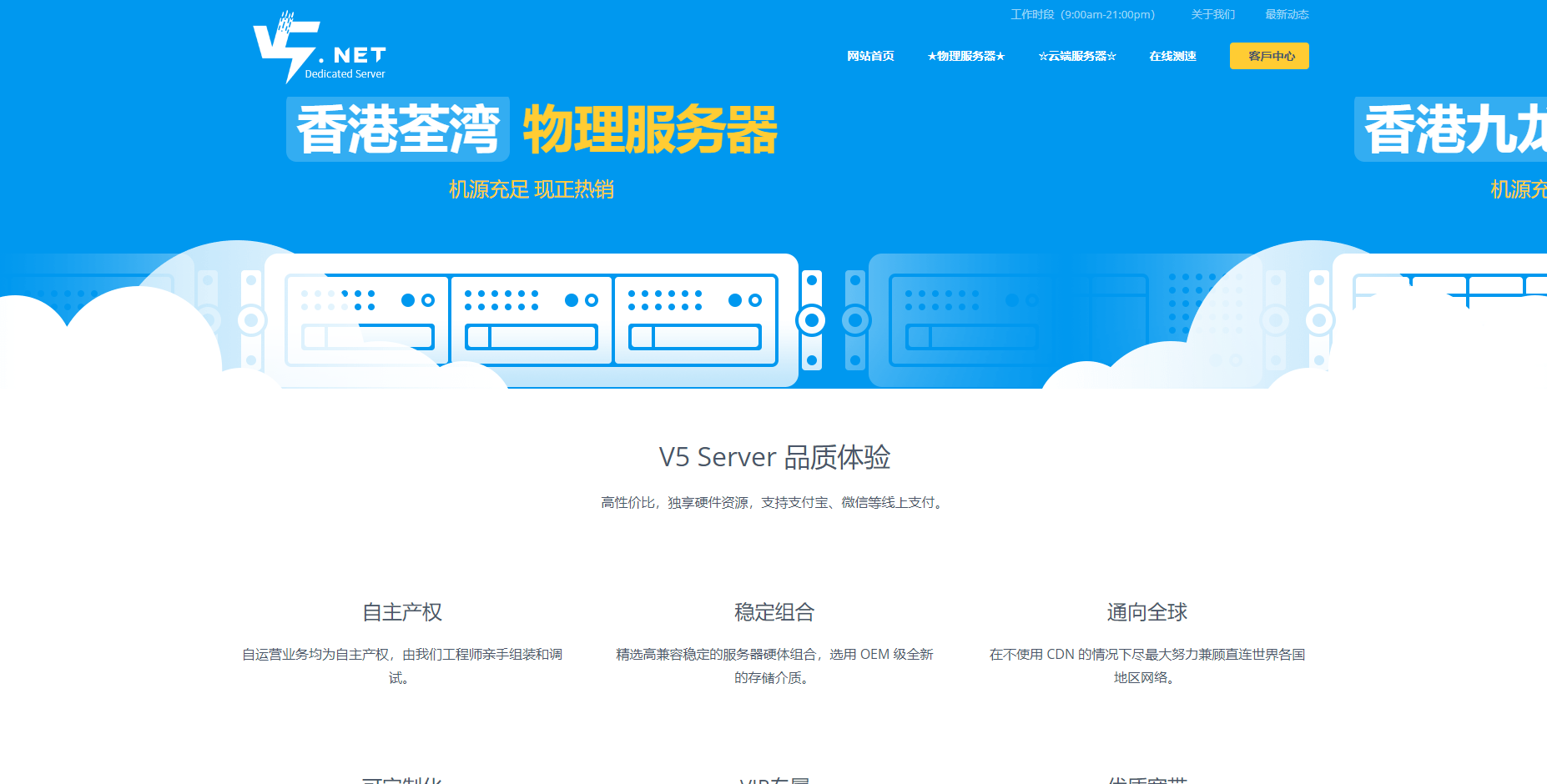 V5.NET Server 为您提供中国香港、韩国首尔区域的物理服务器。自主产权和自主网络优化接入世界各地网络,致力为跨境外贸、远程办公、个人/企业网站提供稳定的生产环境。