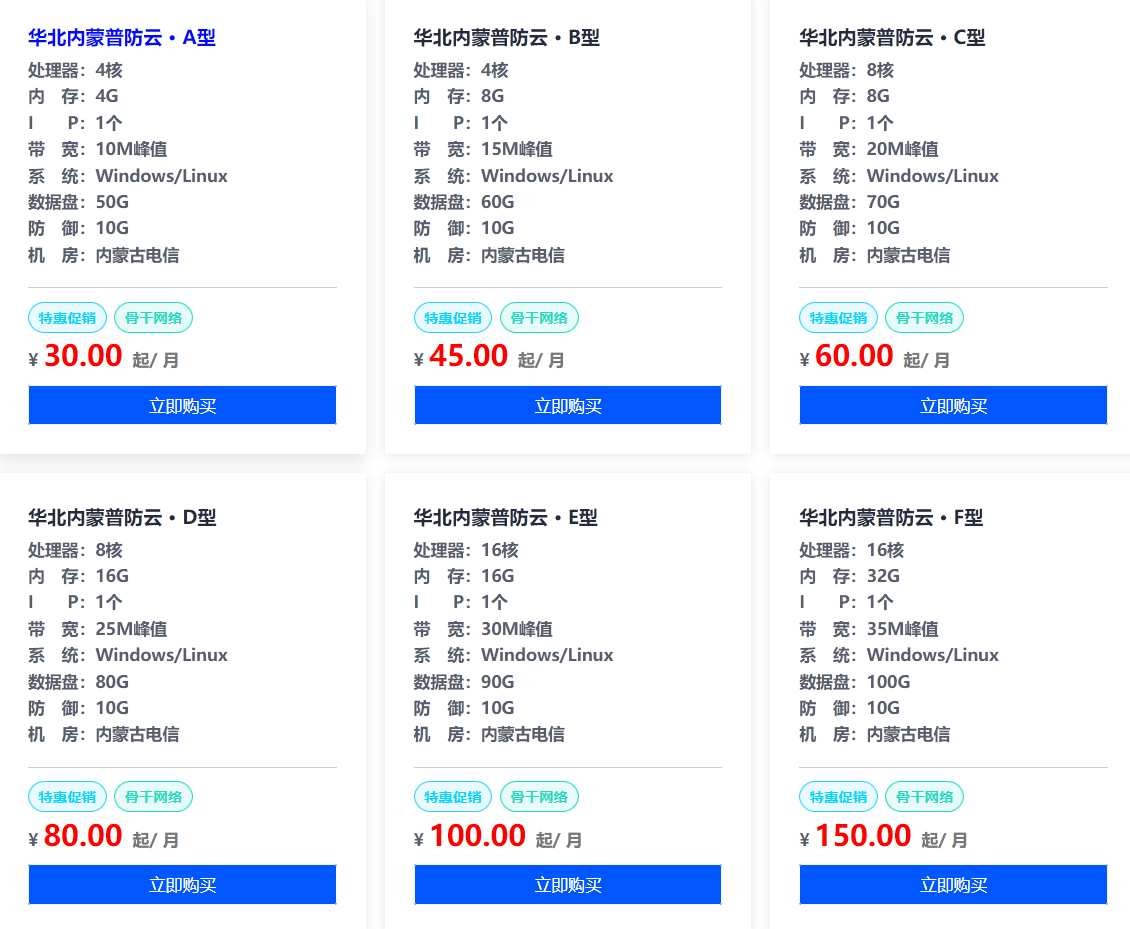 | 地区 | CPU | 内存 | 带宽 | 售价(续费同价) | 购买 |