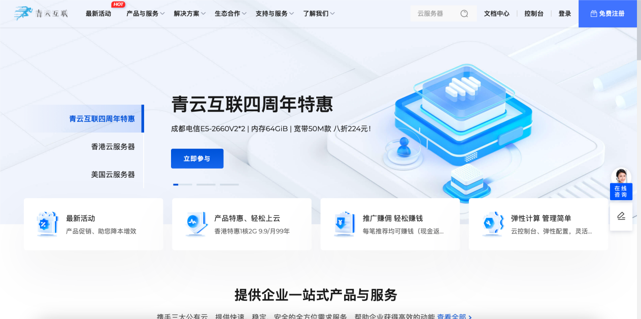 青云互联怎么样?青云互联是一家成立于2020年的主机服务商,致力于为用户提供高性价比稳定快速的主机托管服务,目前提供有美国免费主机、香港主机、韩国服务器、香港服务器、美国云服务器,让您的网站高速、稳定运行。