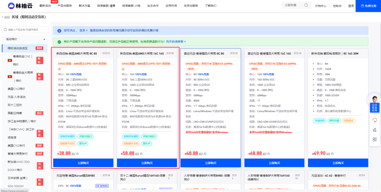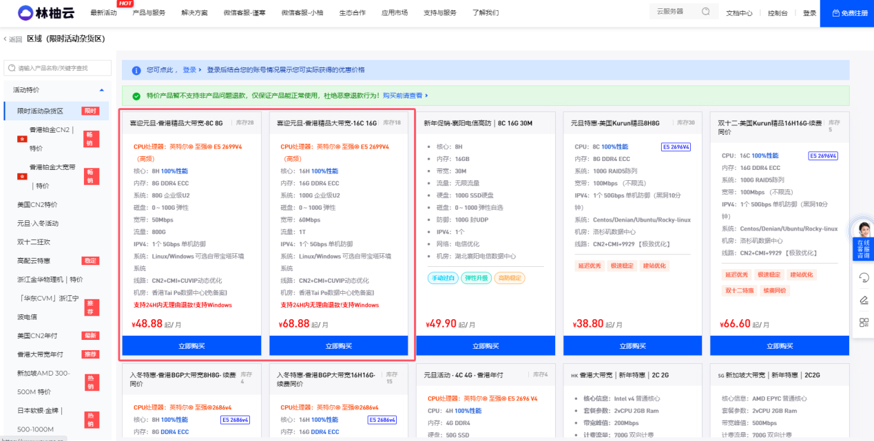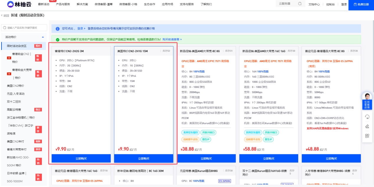 限时活动区 香港美国CN2活动区低至9.9元/起 点击查看测评报告 产品链接
