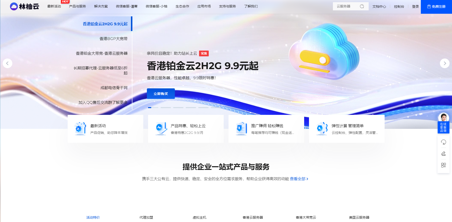 产品与服务,林柚云提供多种配置的云服务器,包括香港云服务器、成都电信骨干网等。