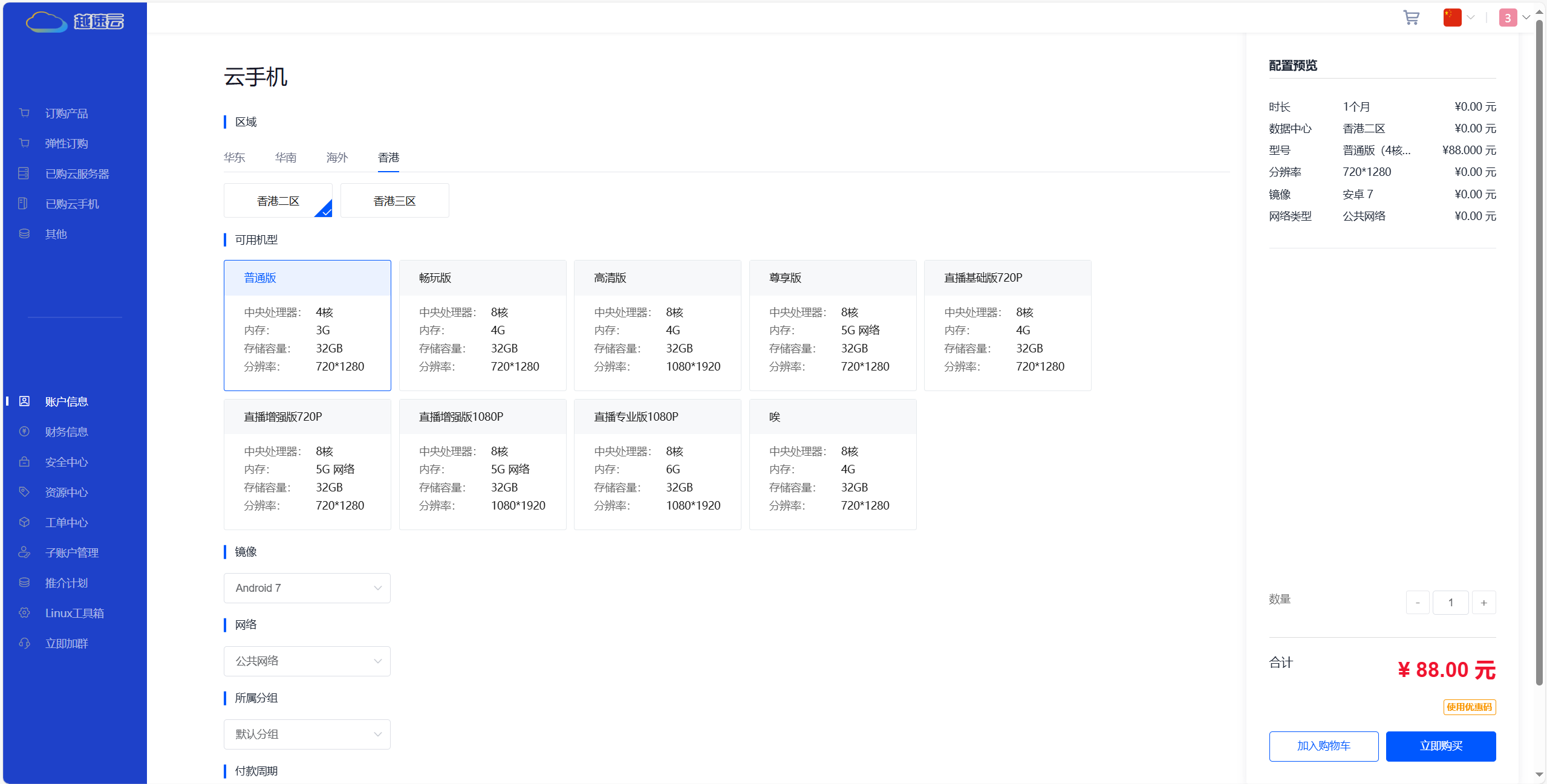 我们有香港、美国、浙江、湖北、四川等云服务器产品,并且拥有江苏、福建、香港、美国等地区的云手机服务。