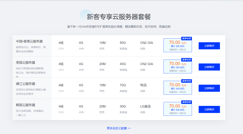 | HKHPVP0404A | 4核 | 4G | 50G+100G | 10M CN2 | 1个 | 197元 | 购买链接 |