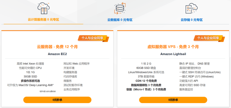 这不,我们看到各大服务商都有发布春季促销活动。今天看到亚马逊云也有发布2023年春季活动,这次春季活动中给出云服务器、数据库、云存储等产品纷纷发布0元购活动,而且最低可以享受领取到12个月的免费云服务器,这个在同类服务商中是不是很少见?