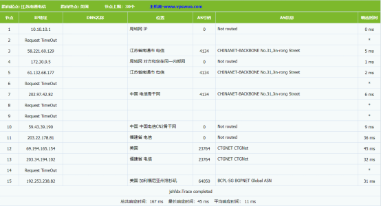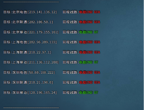 来看一下回程线路电信CN2 GIA和电信CN2 GT