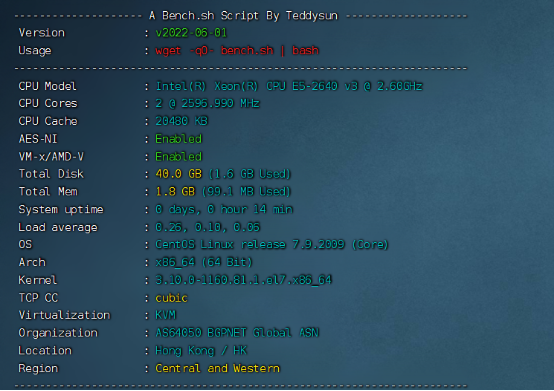 本次测评的机器为香港CN2 GIA2c2g3m 40gssd的机器