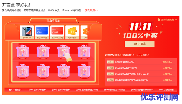 活动期间完成任务,即可获赠开盲盒机会,100% 中奖!iPhone 14 等你领!
