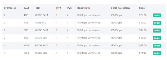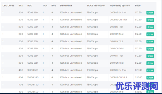 独立服务器默认1Gbps端口、不限流量,最高支持100Gbps带宽;洛杉矶机房可以选择CN2线路。BudgetVM云服务器和VPS都是默认100Mbps带宽,不限流量。所有服务器自带1800Gbps的DDoS防御。BudgetVm机房可选择五个地理位置服务器:洛杉矶,迈哈密,芝加哥,达拉斯,日本。提供试用版本的Window中英文系统。所有服务器均带IPMI.
